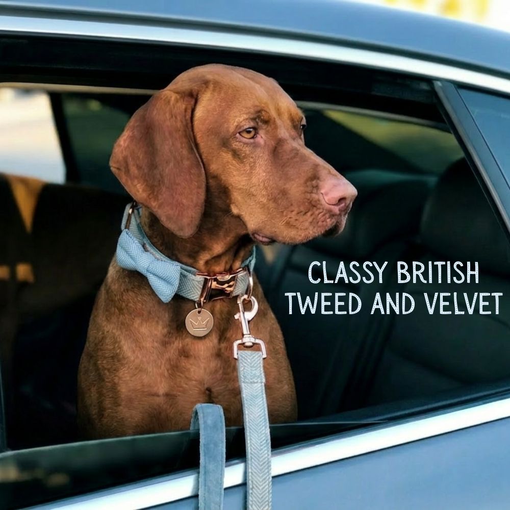 Add a touch of refined charm to your dog’s collar with this luxury two-piece bow tie set, featuring one classic blue tweed bow and one rich velvet bow. Inspired by timeless British style, the deep blue tones create a sophisticated look perfect for both everyday wear and special occasions.