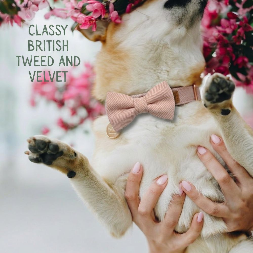Luxury Tweed & Velvet Dog Bow Tie Set – Pink
