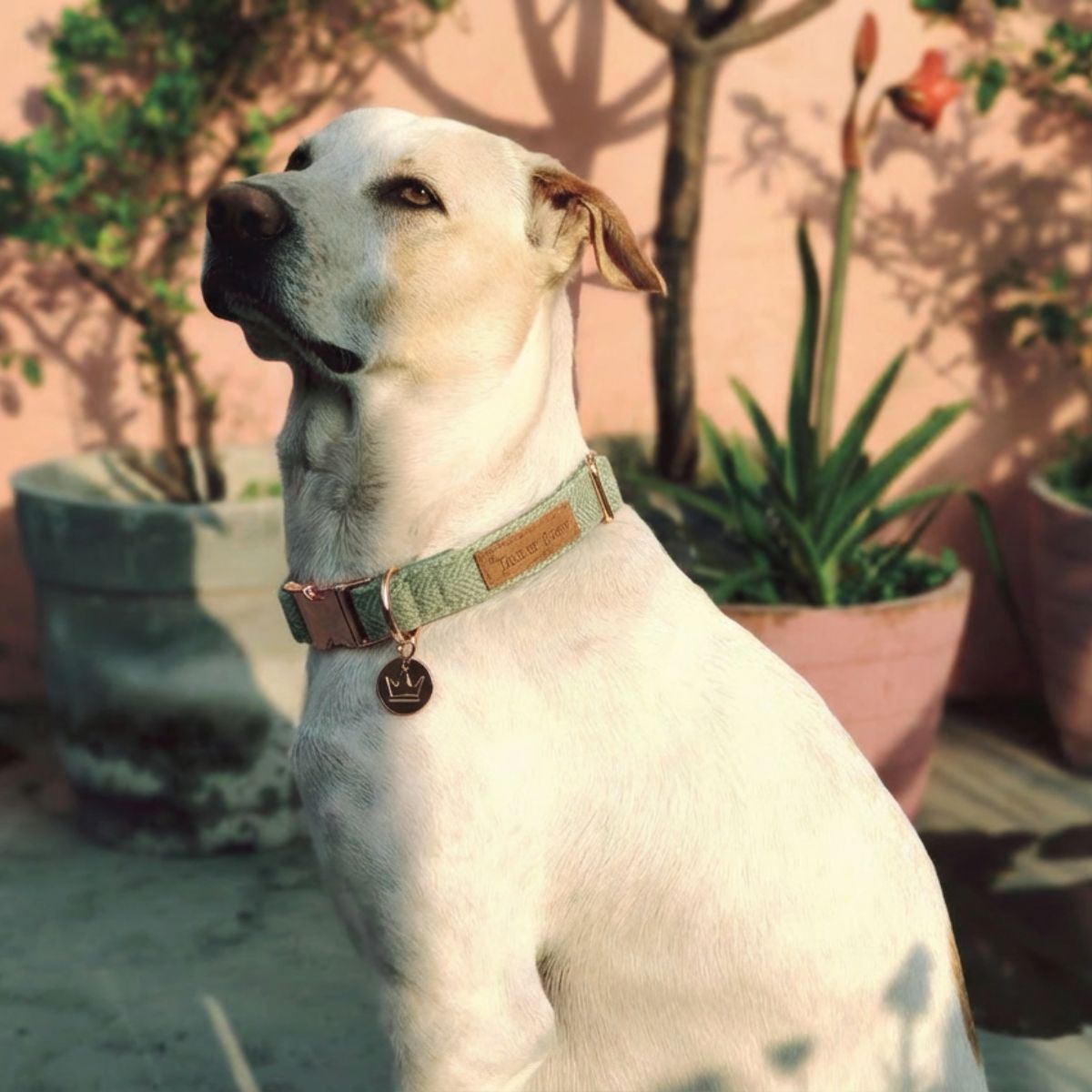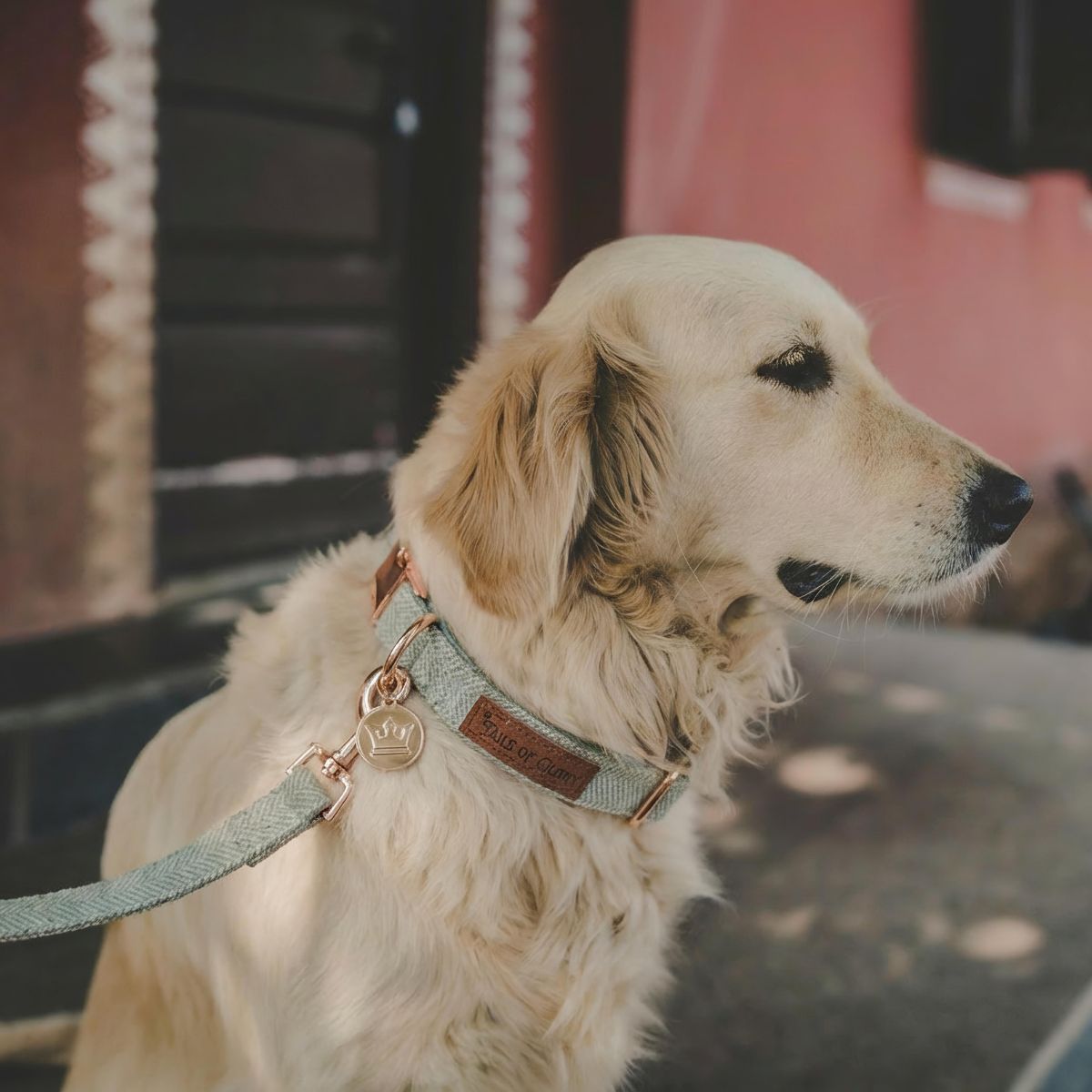 Dog Collar, Pouch and Lead Set - Green Tweed & Velvet